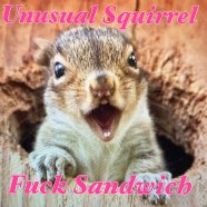 John:  I will step back a bit and say that almost everything I’ve come up with creatively in the past few years has been partly or completely, directly or indirectly, because of Susan Hwang. S‎he booked me to do a reading in 2015, and because I was scheduled to go on pretty late, I said I would want to find some musicians to work with. She suggested Preston Spurlock, and although I didn’t ask him to do that show, I started working with him and Ray and Susan shortly thereafter, and that became Unusual Squirrel. Susan also formed the Bushwick Book Club, and I’ve written several things for that, one of which (Monsters) is on Fuck Sandwich. And Susan came up with the title Fuck Sandwich (see below). And I was looking at her blog one day and she had an entry based on an email her mother sent her. Her mother had sent her a picture of a squirrel that  she had taken, and the subject line of the email was “Unusual Squirrel,” and that immediately struck me as an excellent name for this new band. So that’s the somewhat convoluted story of Unusual Squirrel- Susan’s mother inadvertently named the band. The album cover was meant as a placeholder. Ray put it together on the spur of the moment. I’ve asked Preston if he’d like to do something, but that hasn’t happened yet. I like what Ray did, though.